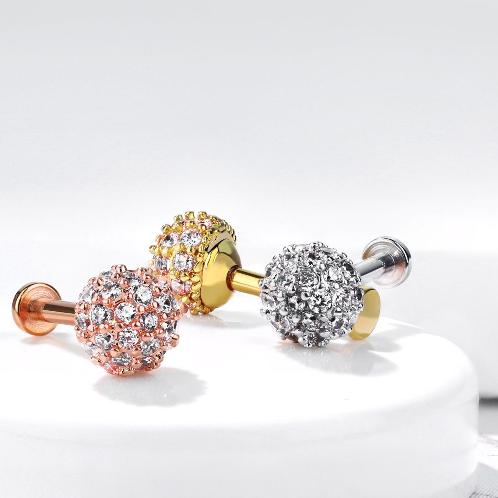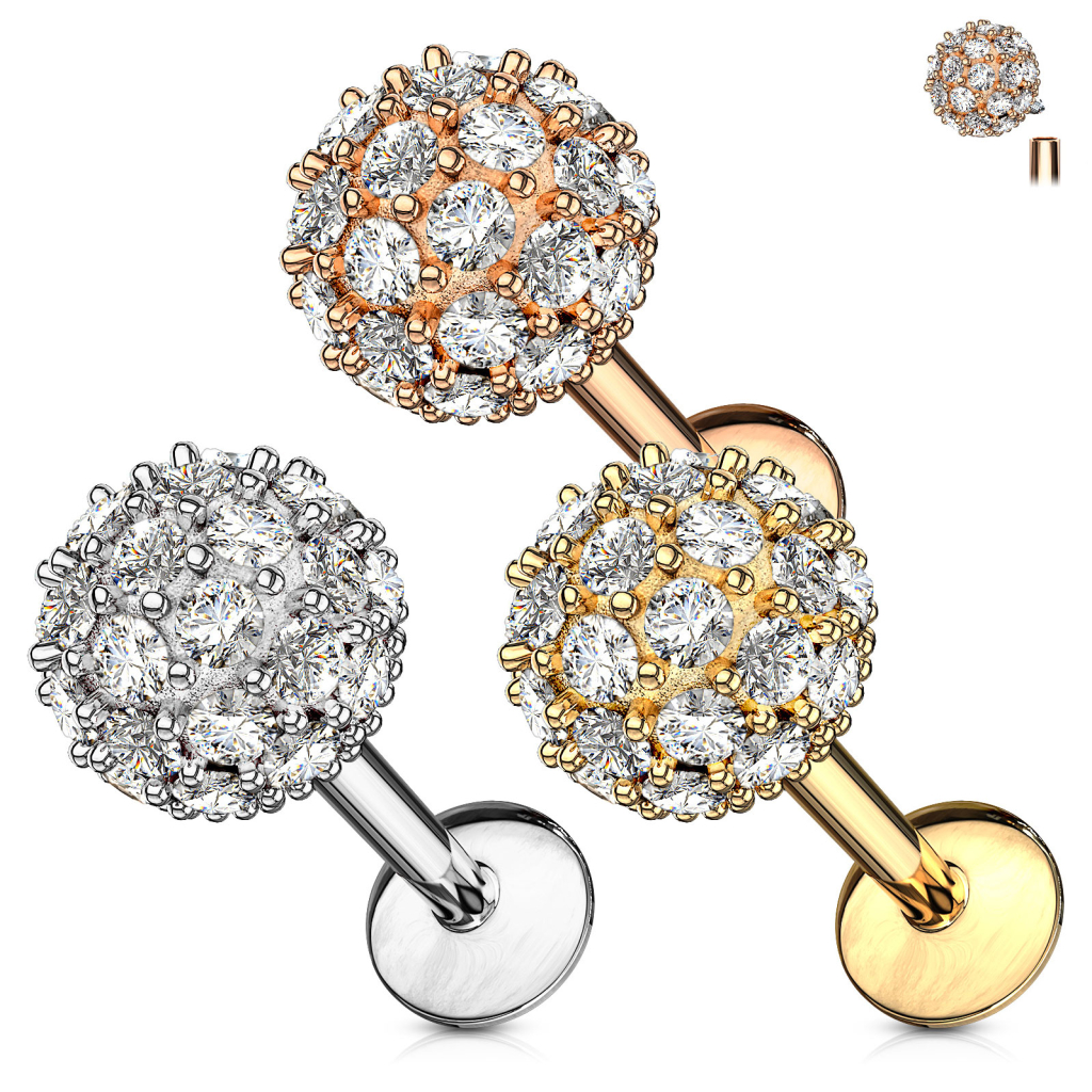 Labret avec filetage interne et une boule ornée de pierres