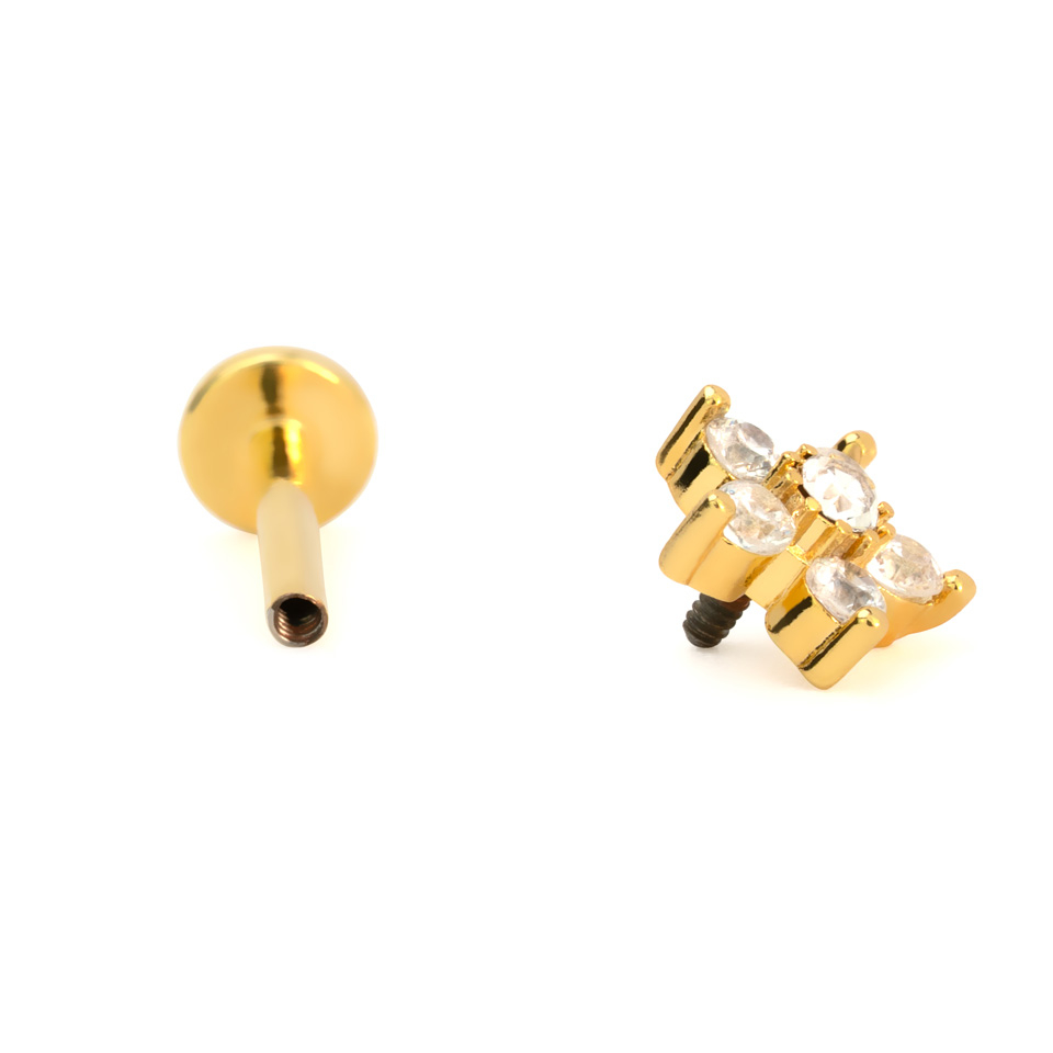 Labret avec filetage interne et une fleur ornée de pierres