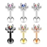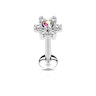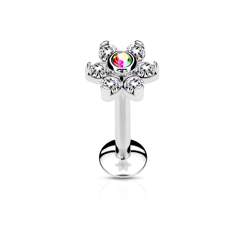 Si tu peux choisir entre plusieurs bijoux avec filetage interne ou externe, le filetage interne est définitivement recommandé vu que c'est plus doux pour le piercing. Le bijou sur la photo ci dessous et justement fait avec un filetage interne où la fleur se visse sur la tige. Lorsque tu mets la tige dans le piercing, le filetage ne doit pas aller dans le trou.