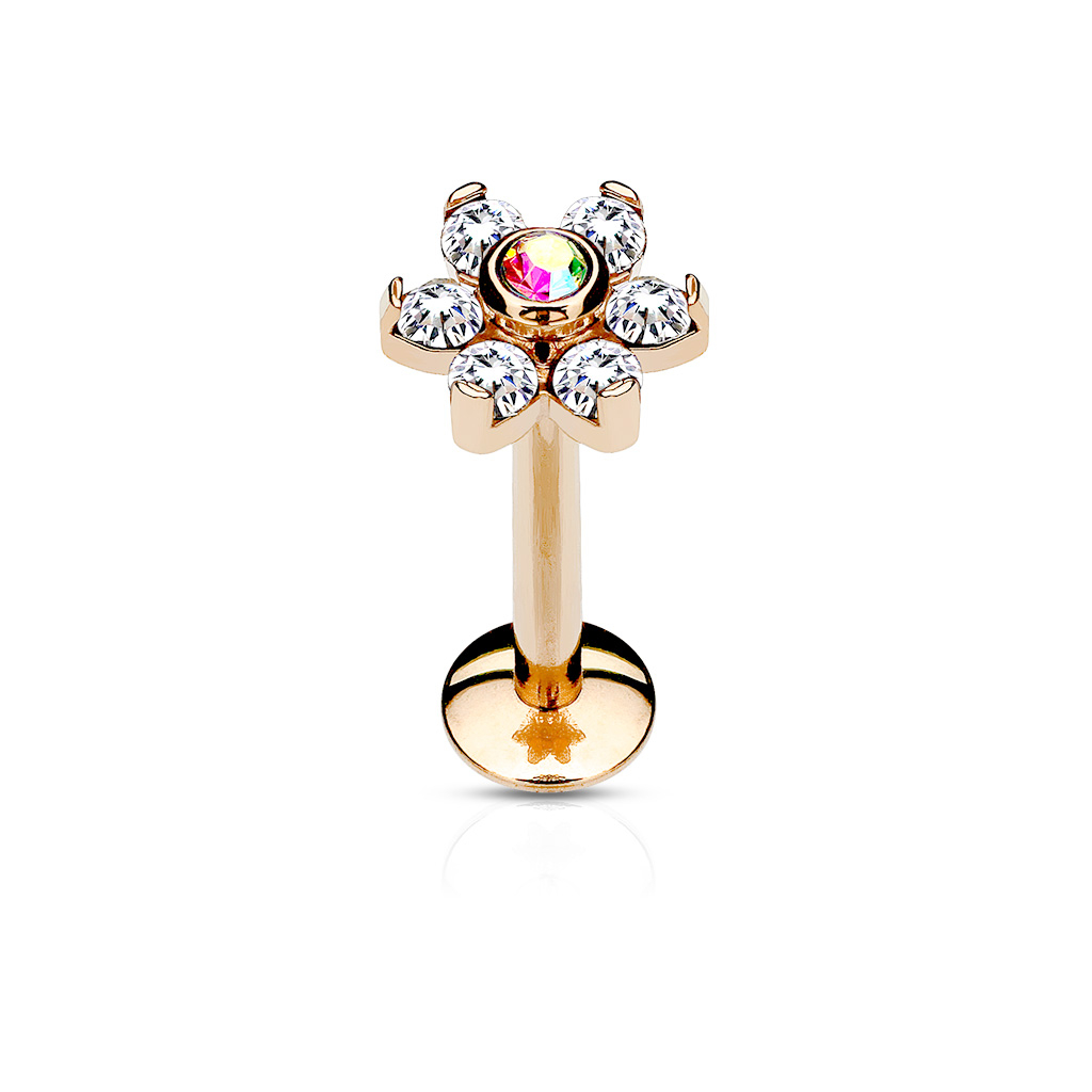 Labret avec fleur et filetage interne-Or rose-Aurore boréale