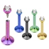 Ce labret a une couleur blanche brillante pour tous les modèles, quelle que soit la couleur choisie par la barre. Le brillant reste en place grâce à quatre petits points de serrage ou griffes fixés à la structure du bijou. Tu n'as pas à te soucier d'exposer ce merveilleux bijou à l'humidité ou à la vapeur d'un bain, car grâce à son type de sujétion et au matériau dans lequel il est fabriqué, il n'y a aucun risque de gâchis.