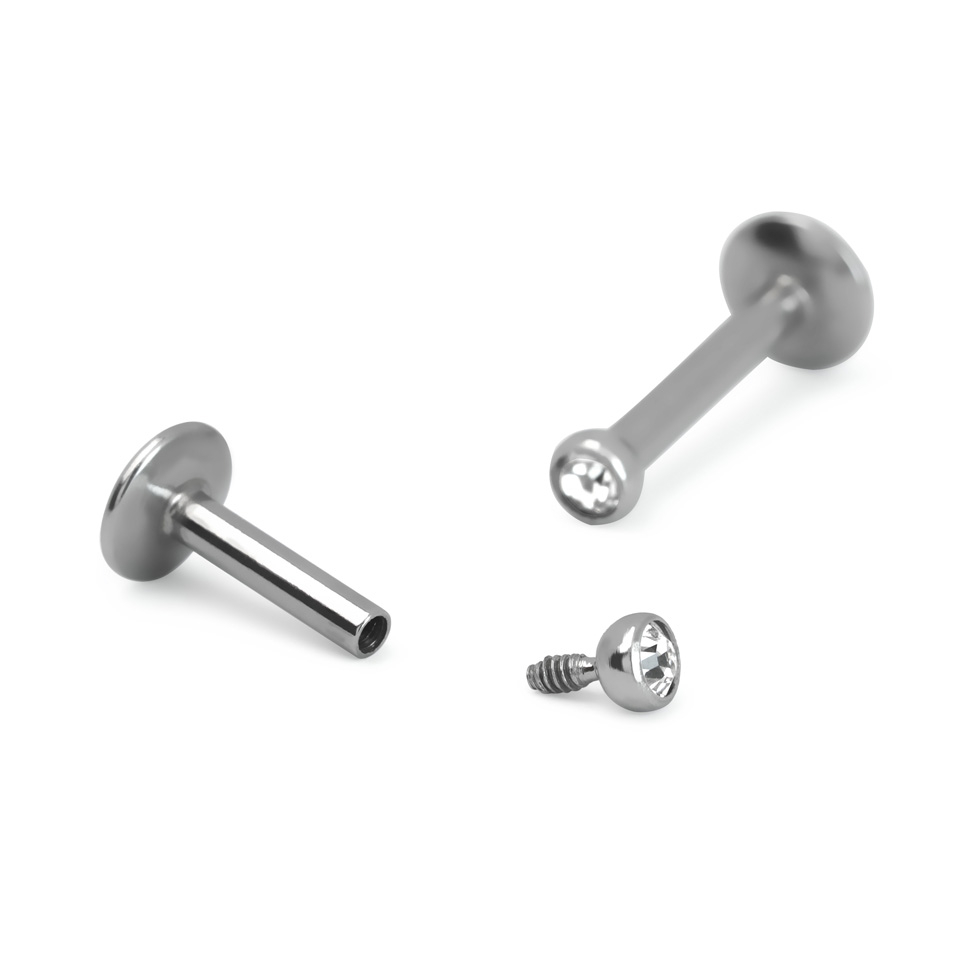 Le labret est tres pratique vu qu'il contient un tauraudage interne. Tu peux donc le mettre dans ton piercing avant de visser le dessus. Ta peau ne sera pas abimée.