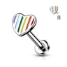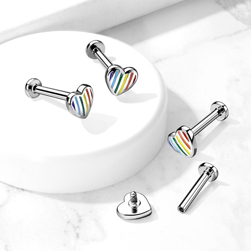 Labret avec un cœur avec rayures couleurs arc-en-ciel et filetage interne