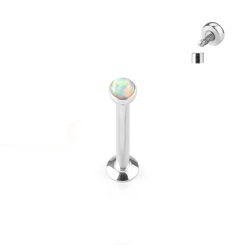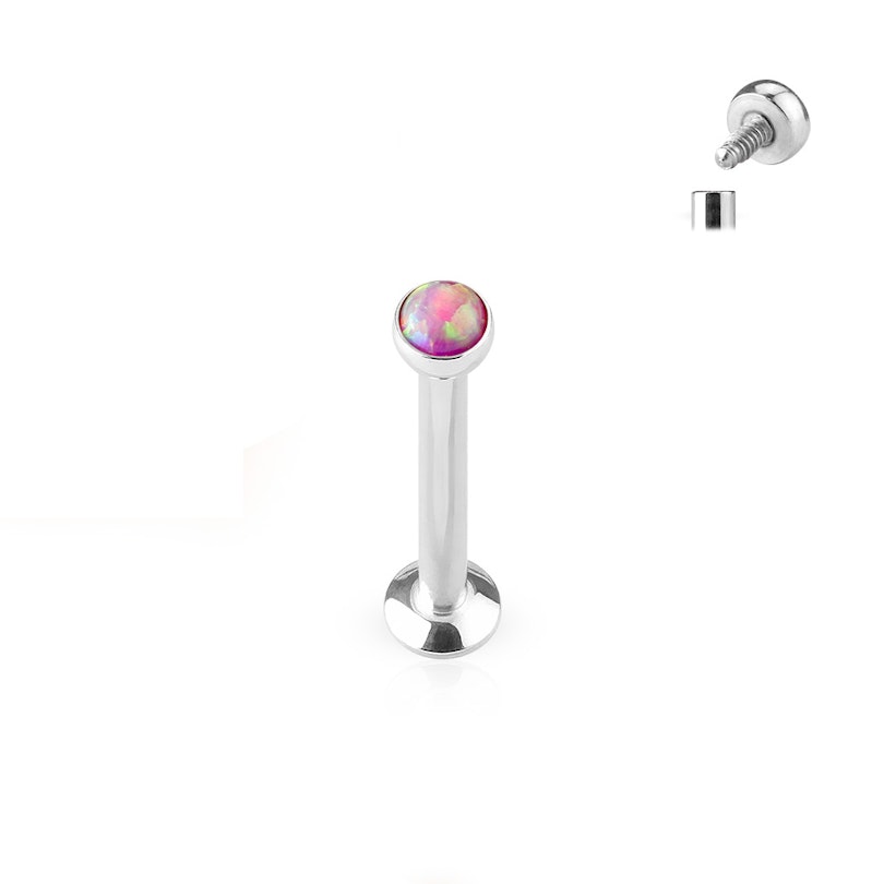 Si tu aimes les bijoux colorés, ce labret porte une opale synthétique. Il peut être utilisé dans de nombreux types de piercings, tels qu'un piercing à la lèvre ou un piercing à l'hélix. Si les objectifs des bijoux correspondent aux objectifs de ton piercing, les bijoux peuvent être utilisés.