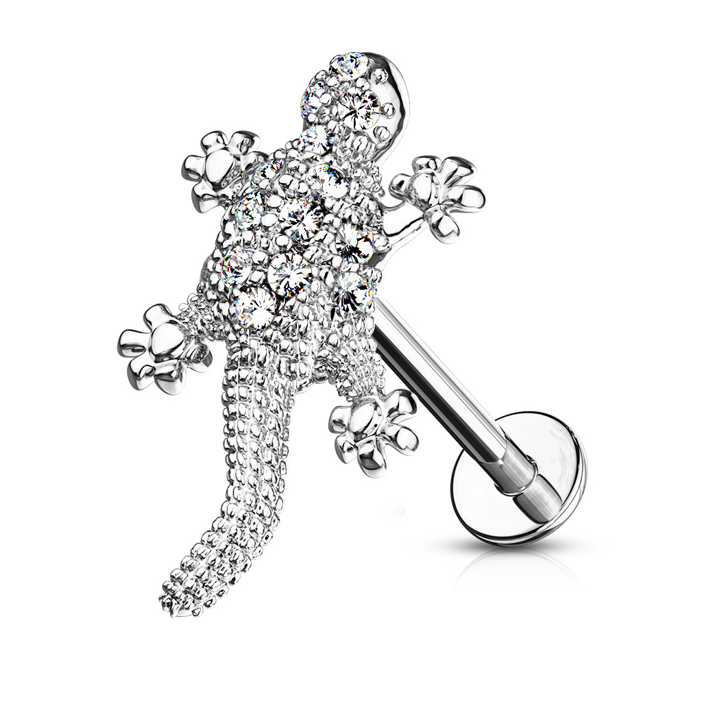 Labret avec un lézard incrusté de pierres et un filetage interne