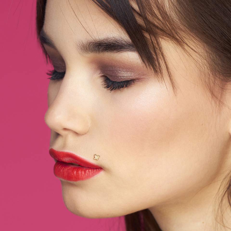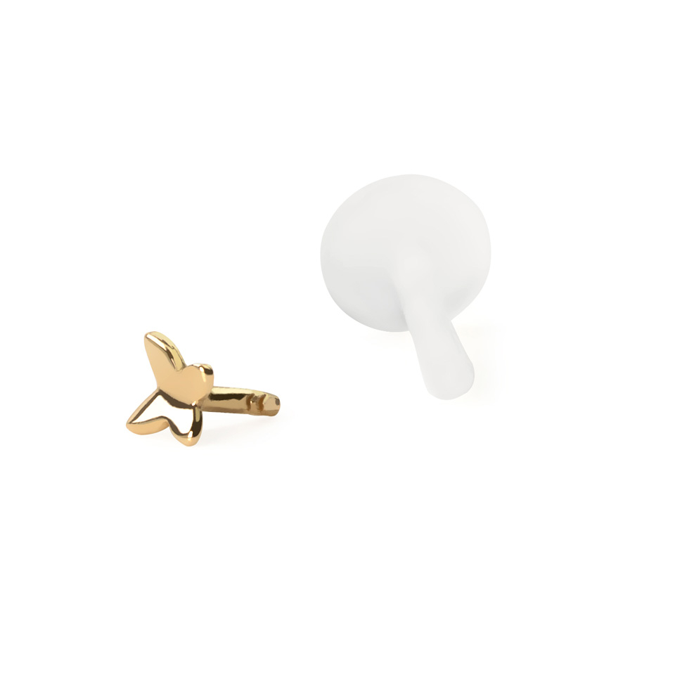 Nom: Labret avec un papillon en or 14 carats et une tige en PTFE