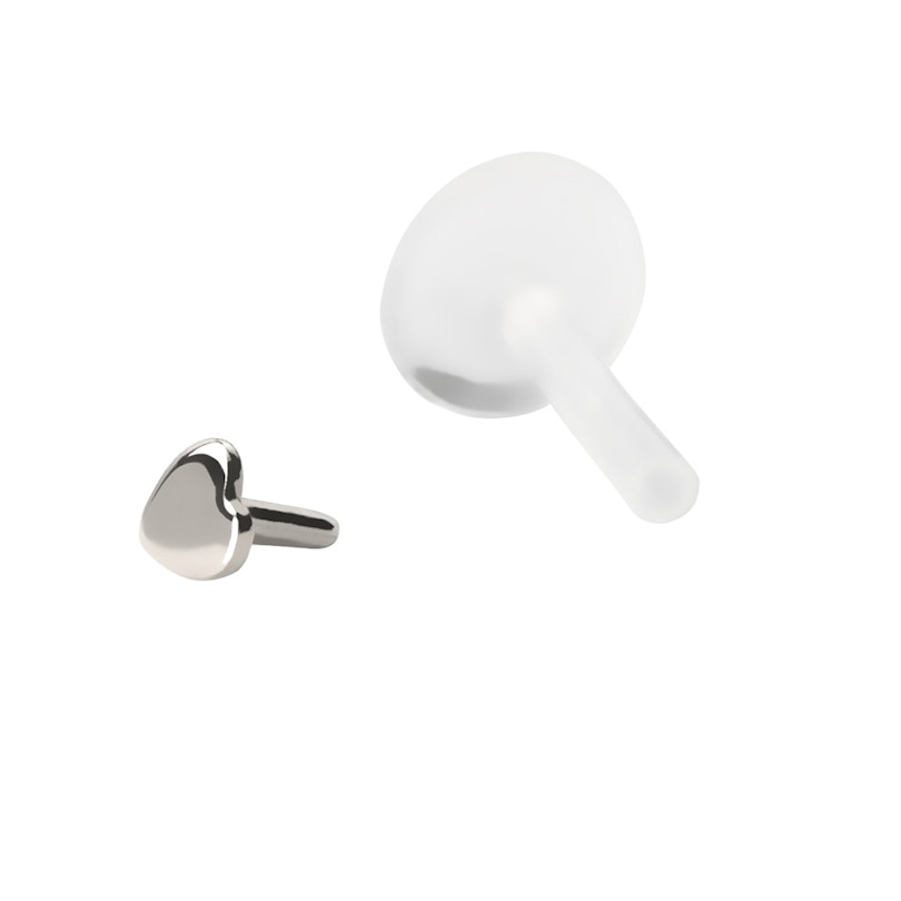 Si tu cherches un bijou avec un design en forme de cœur, ce labret est exactement ce qu'il te faut ! La partie supérieure est en or 14 carats, ce qui renforce son côté exclusif et sa qualité. Le design en forme de cœur est une épingle de type « push-in » qui s'enfonce dans la tige en PTFE pour le fermer.