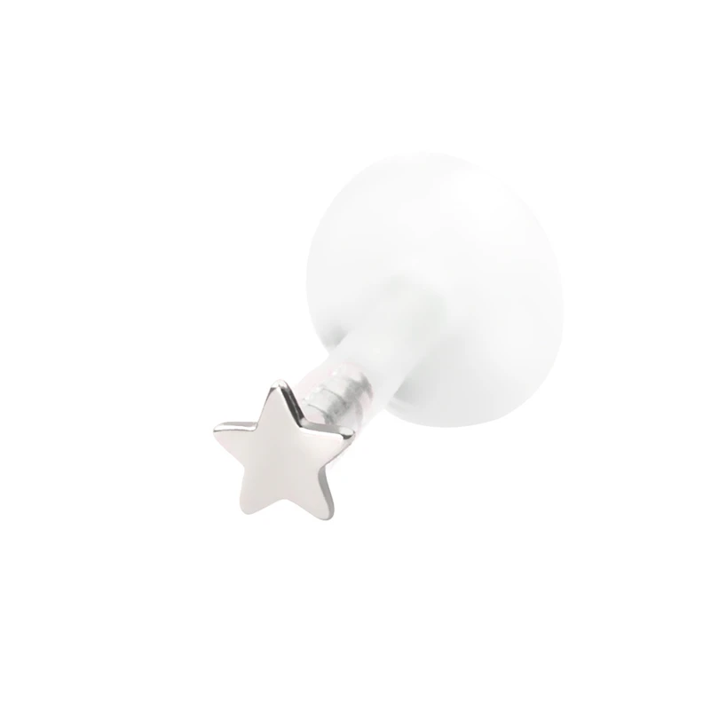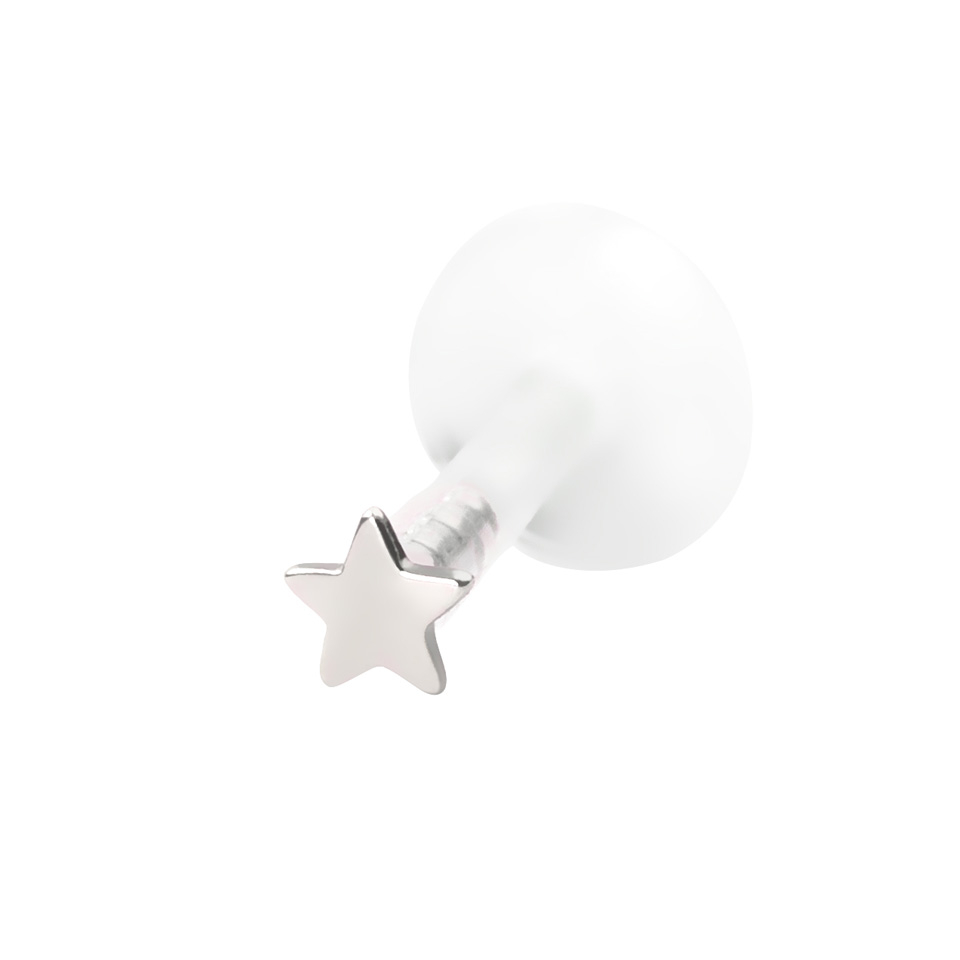 Labret en or 14 carats avec une belle étoile-Or blanc 14K / PTFE