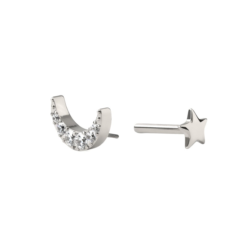 Le design en forme de lune mesure 8 mm de longueur et l'étoile plate affiche un diamètre de 4 mm.