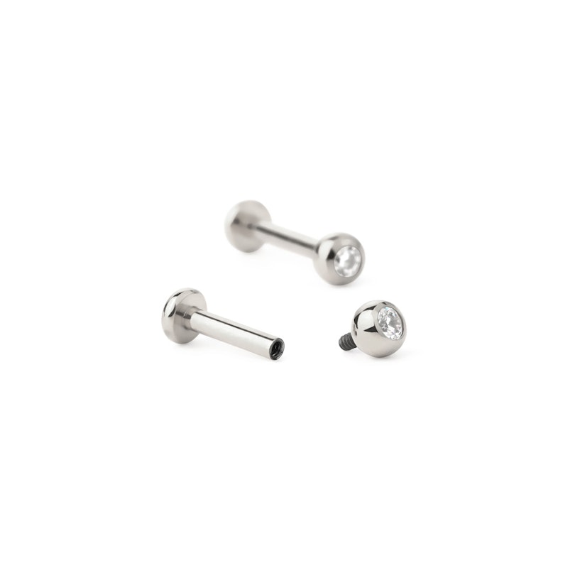 Labret en titane avec filetage interne et boule ornée d'une pierre