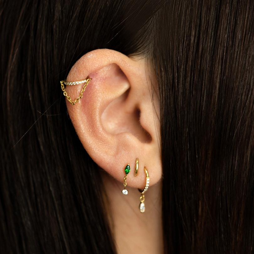 Il sera du plus bel effet dans de nombreux piercings, notamment au conch, à l'hélix, au lobe ou encore au tragus. Quelquefois, le simple mouvement d'une chaîne peut changer ton look du tout au tout, et ce bijou en est le parfait exemple.