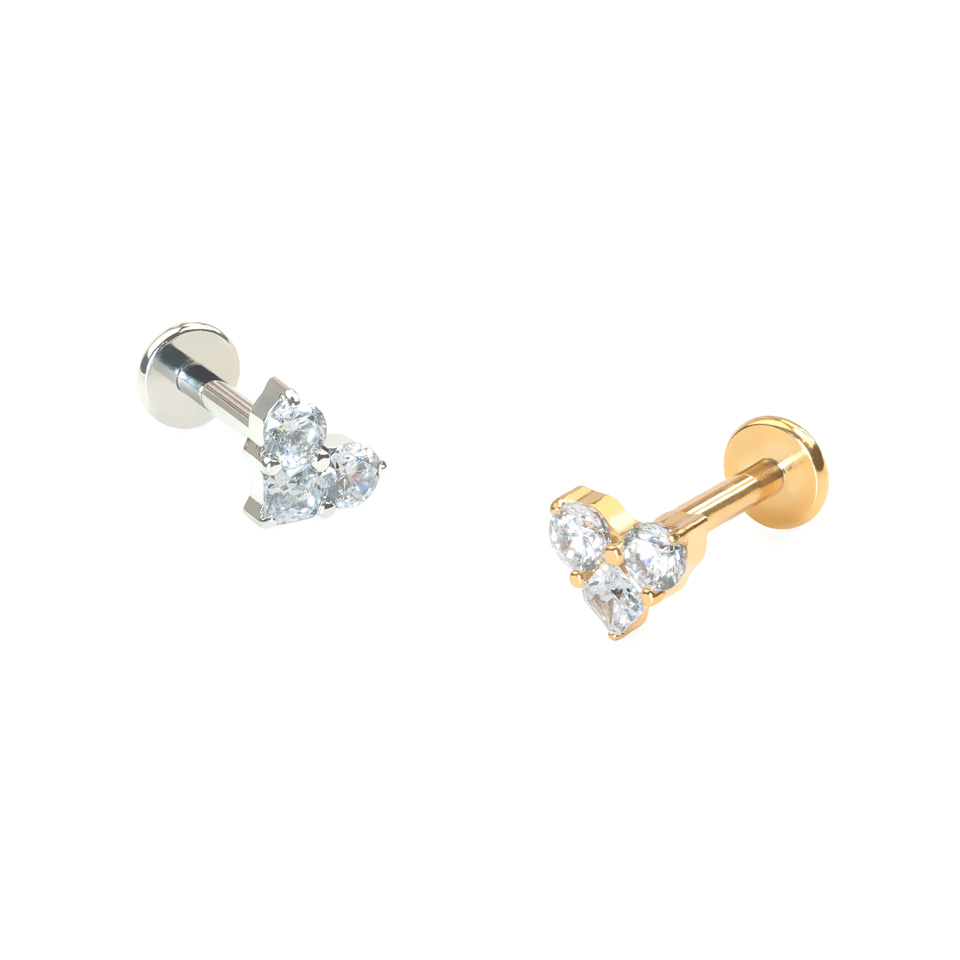 Le bijou que nous te présentons est un labret en titane qui se démarque par l'élégance de son design. Comme tu peux le voir, il est orné de trois pierres en oxyde de zirconium disposées de manière à former un joli cœur. Les deux pierres sur la partie supérieure sont rondes, tandis que celle sur la partie inférieure est carrée, ce qui est du plus bel effet. De plus, ce labret est doté d'un filetage interne. Et ce n'est pas tout ! Deux modèles sont disponibles : un avec des finitions en or et un autre avec des finitions en argent. Il s'agit donc d'un bijou qui sublimera de nombreux piercings d'oreilles. Il mesure seulement 5 mm à son point le plus large et grâce à son disque plat, il est très agréable à porter.