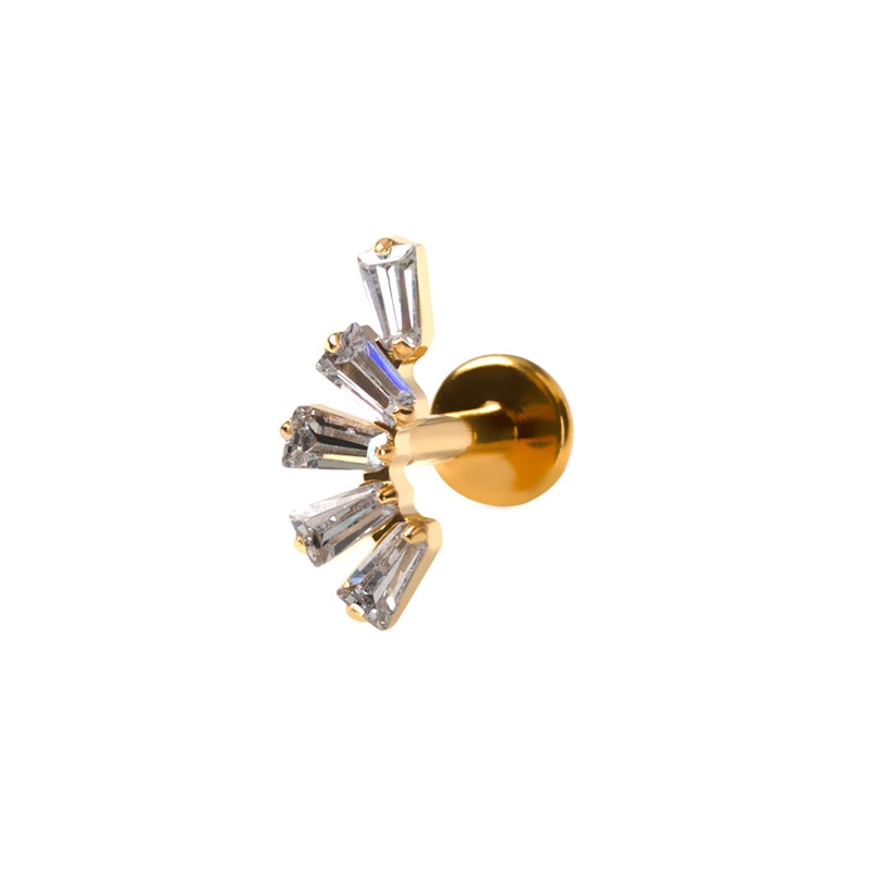 Ce labret est conçu pour celles et ceux pour qui rien n'est plus important que la précision. Ses pierres taille baguette sont rigoureusement alignées et leurs lignes nettes viendront ajouter la touche finale à ta compo d'oreille.