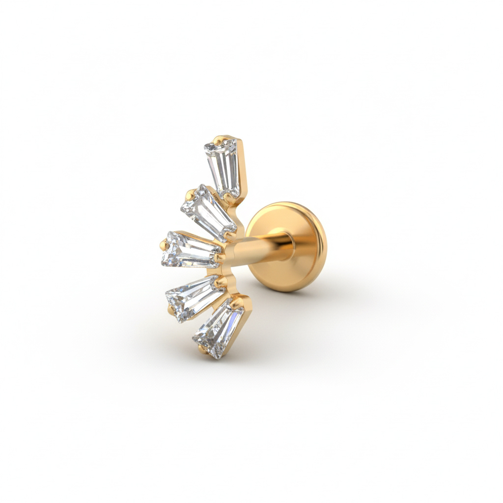 Ce labret est conçu pour celles et ceux pour qui rien n'est plus important que la précision. Ses pierres taille baguette sont rigoureusement alignées et leurs lignes nettes viendront ajouter la touche finale à ta compo d'oreille.