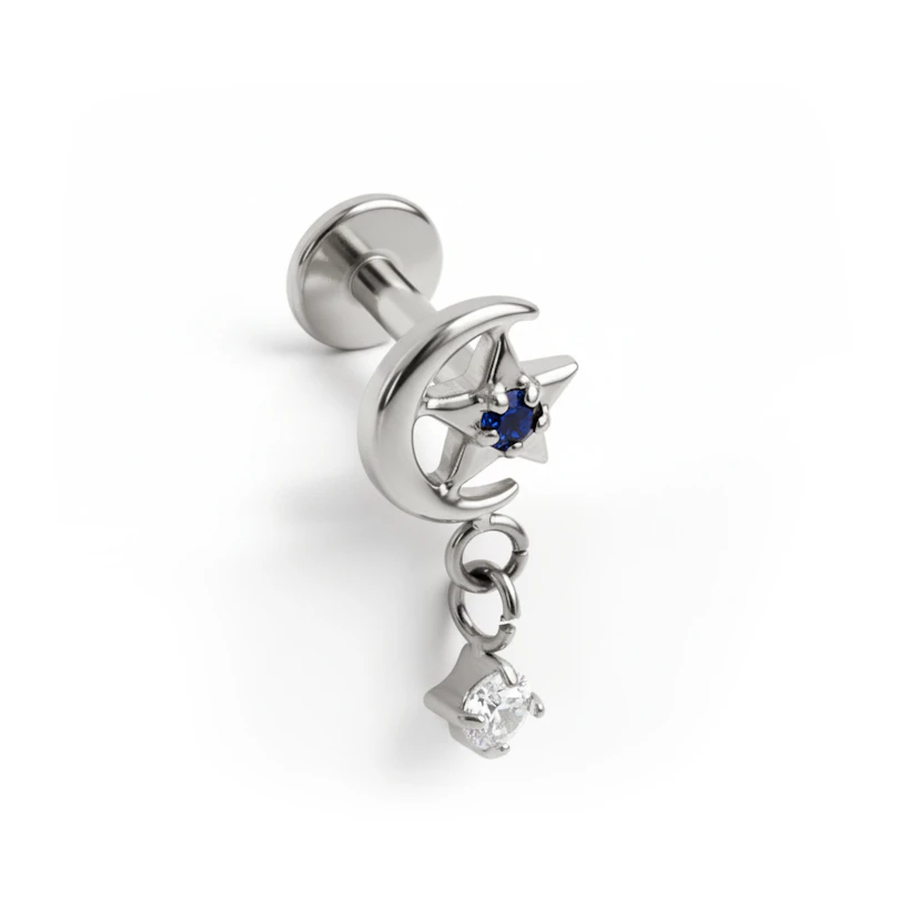 Labret en titane avec un charm, une lune et une étoile