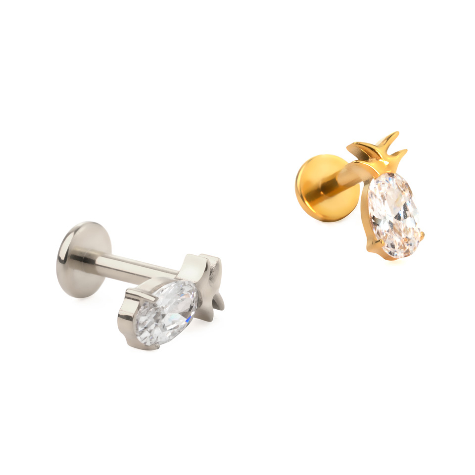 Le bijou que nous te présentons est un joli labret. Comme tu peux le voir, il est doté d'un ravissant design en forme d'ananas orné de pierres scintillantes, ce qui lui confère à la fois une touche d'originalité et d'exotisme, mais également un aspect exclusif qui ne laissera personne indifférent.