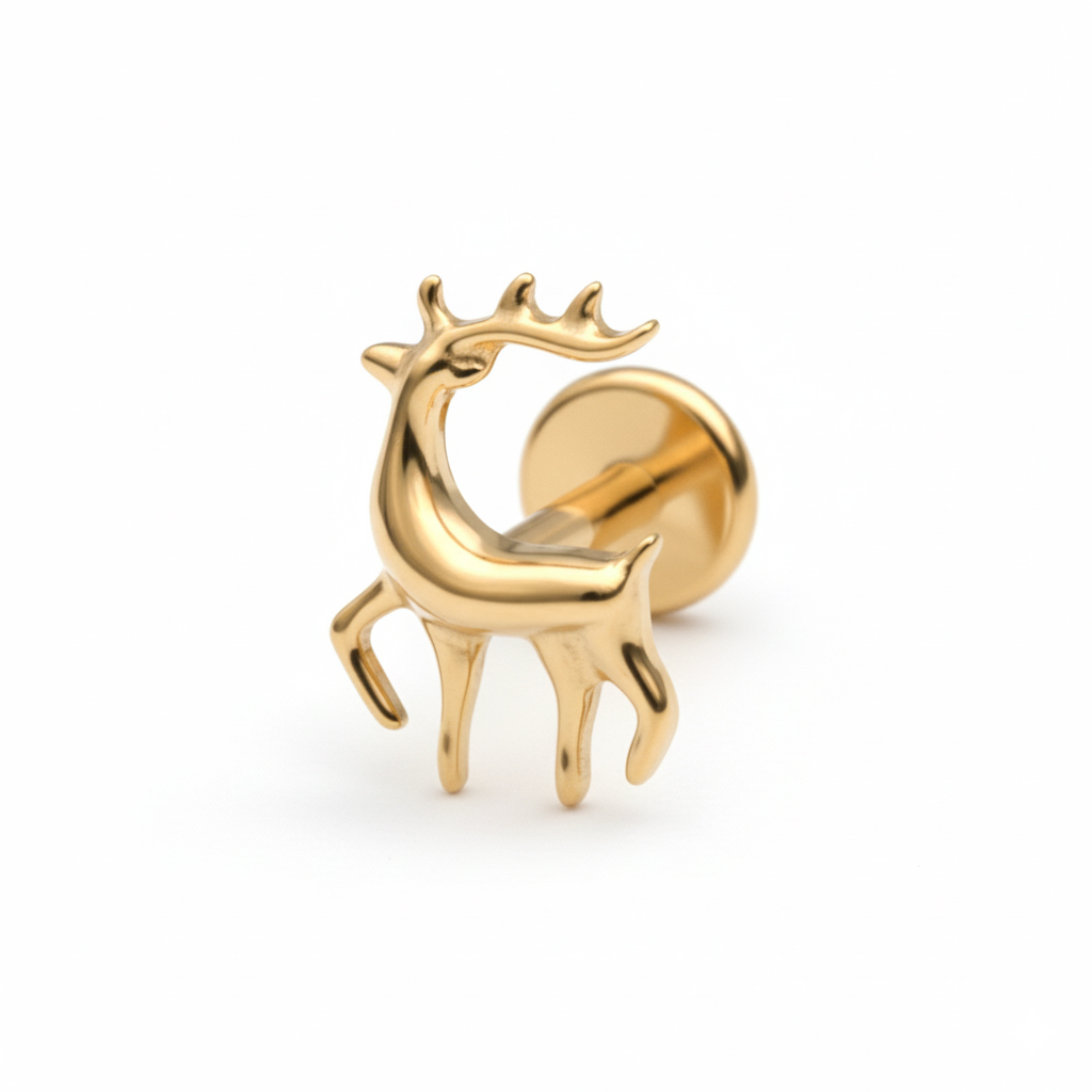 Tu aimerais que ta compo d'oreille contienne un élément qui célèbre la magie de Noël ? Il suffisait de demander ! Ce labret avec son renne en pleine course rappelle les douces lumières et les nuits silencieuses de l'hiver et cette bonne humeur typique des fêtes de fin d'année.