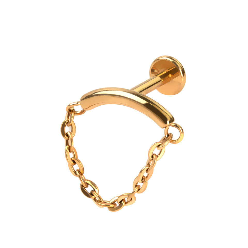 Labret en titane avec une barre courbée et une chaîne