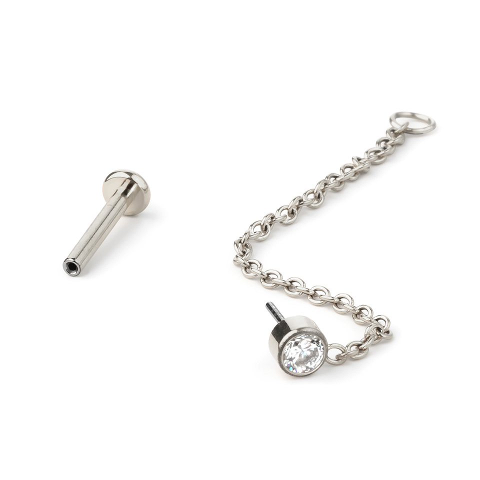 Malgré son apparente simplicité, le labret que nous te présentons regorge de subtilités. Comme tu peux le voir sur l'image de présentation, il possède un design avec une pierre sertie ainsi qu'une chaîne reliée au bas de la monture à l'aide d'une petite boucle. La chaîne est dotée d'une boucle plus grande à son extrémité, ce qui t'offre de nombreuses possibilités. Par exemple, tu peux soit l'attacher à l'arrière du labret de sorte qu'elle passe par-dessus ton oreille, soit à un autre bijou que tu portes déjà à l'oreille. Quoi que tu fasses, une chose est sûre : ton style passera au niveau supérieur !