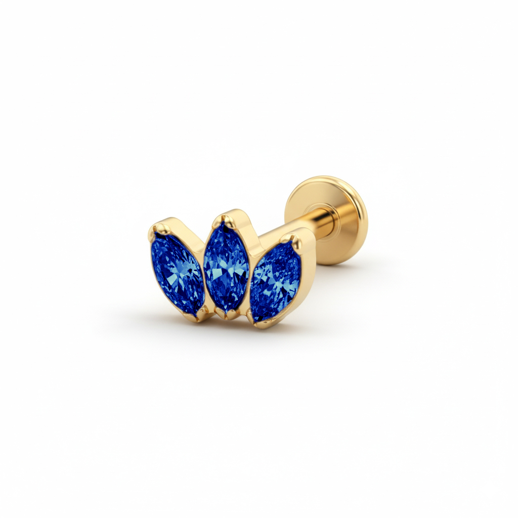 En matière de style, on dit souvent que les petits détails font toute la différence. Ce labret en est le parfait exemple. Son trio de pierres, avec un sertissage à griffes et dont la disposition évoque une couronne, apporte du relief à ta compo d'oreille.