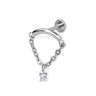 Le bijou que nous te présentons est un labret en titane au design percutant. Comme tu peux le voir, ce labret possède une tige incurvée avec une chaîne qui relie ses deux extrémités par le dessous. Et ce n'est pas tout : une jolie pierre sertie est suspendue à une petite boucle de la chaîne ! Plus important encore, cette pierre n'est pas fixée au centre de la chaîne, ce qui signifie que tu es libre de l'orienter comme tu le souhaites ! Tu peux donc porter ce bijou à de nombreux endroits différents, notamment dans ton trou de piercing au lobe ou à l'hélix et il sera tout aussi joli seul qu'en combinaison avec d'autres bijoux.
