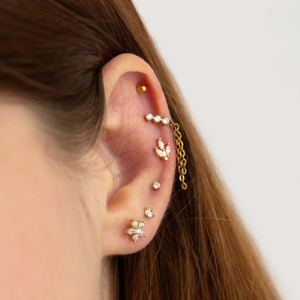 Placement: Tragus, Spiderbite, Snakebite, Medusa, Madonna, Lower labret, Lobe, Hélix, Conch, Anti-hélix, Angelbite