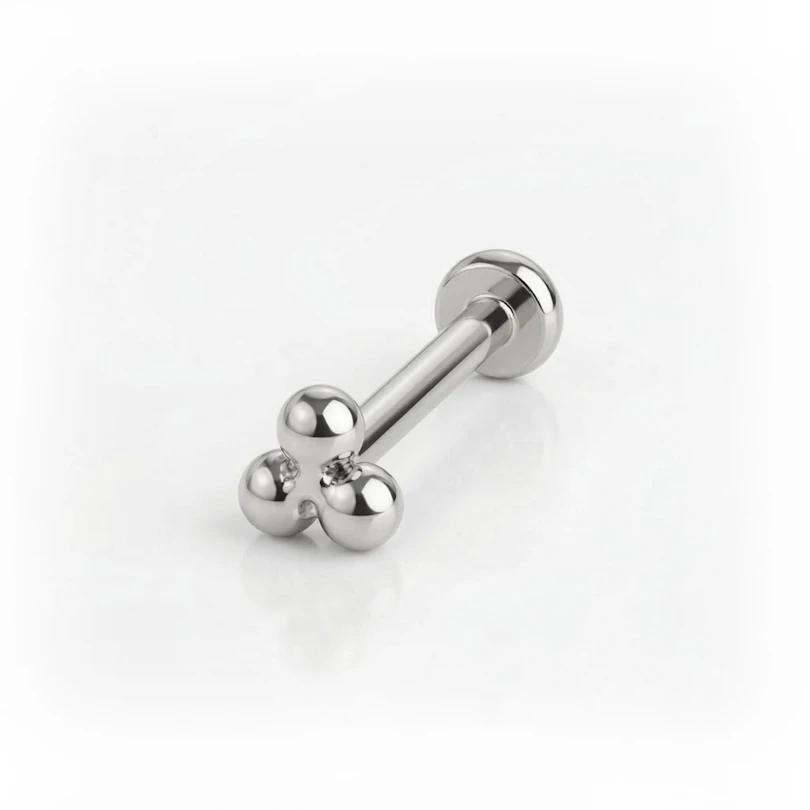 Les labrets sont des bijoux de piercing très polyvalents qui peuvent être portés dans de nombreux trous de piercings différents. Ce modèle au design minimaliste s'accordera parfaitement avec d'autres bijoux de piercing. Si tu cherches un nouveau bijou pour tes piercings à l'oreille ou un bijou original pour ton piercing à la lèvre, alors ce modèle est fait pour toi ! La partie supérieure, d'une taille de 3 mm, est munie de trois boules qui forment un triangle. De plus, la tige de ce labret est disponible en plusieurs tailles afin que tu puisses choisir celle qui convient le mieux à ton trou de piercing.