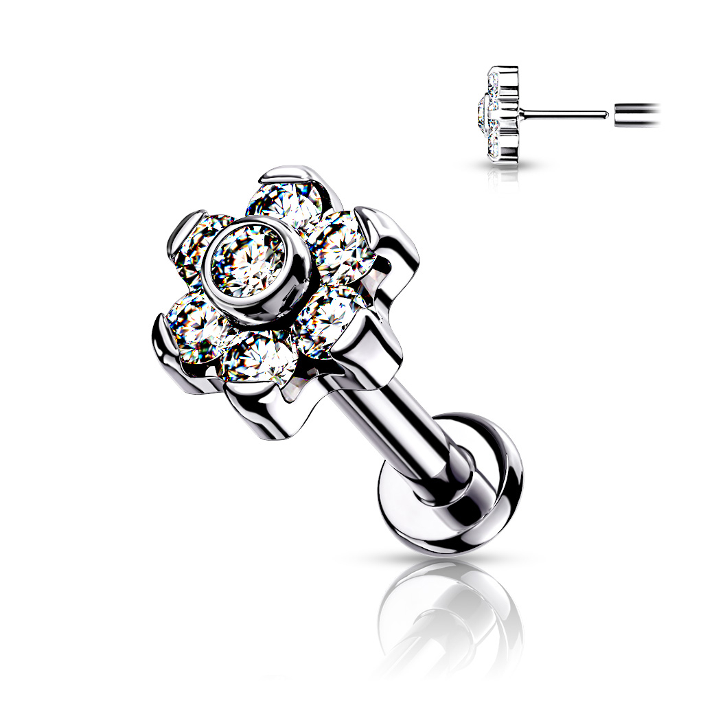 Nom: Labret push-in en titane avec une fleur ornée de pierres