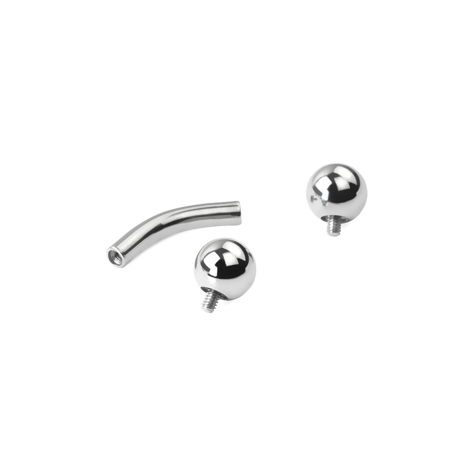 La tige courbée est également munie d'un filetage interne. Cela rend le bijou confortable parce que tu n'as pas besoin d'un fil qui peut faire de petites fissures à travers ton piercing. Le fil lui-même est sur la boule que tu visses lorsque les bijoux sont insérés pour la première fois.