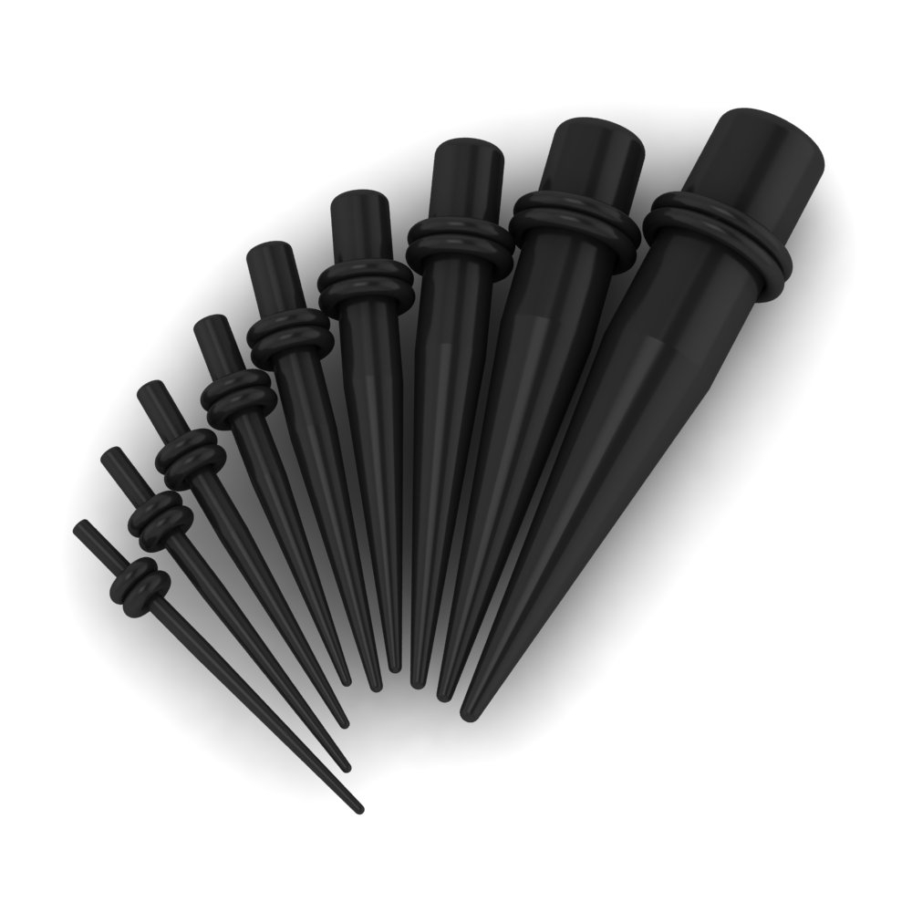 Le lot contient 9 tapers dans des tailles allant de 14g à 00g (de 1,6 mm à 10 mm) :