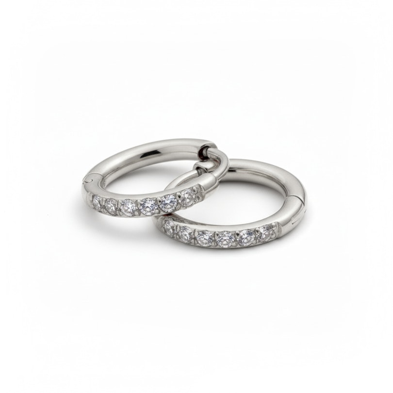 Ces créoles avec un sertissage pavé sont tes futurs indispensables. Elles sont fabriquées en acier chirurgical, un matériau conçu pour durer. Chaque boucle d'oreille est ornée de pierres scintillantes en oxyde de zirconium, pour une jolie touche de brillance.