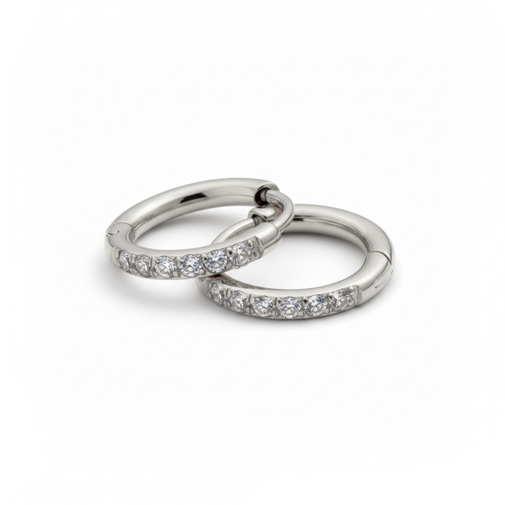 Nom: Paire de créoles en acier chirurgical avec des pierres