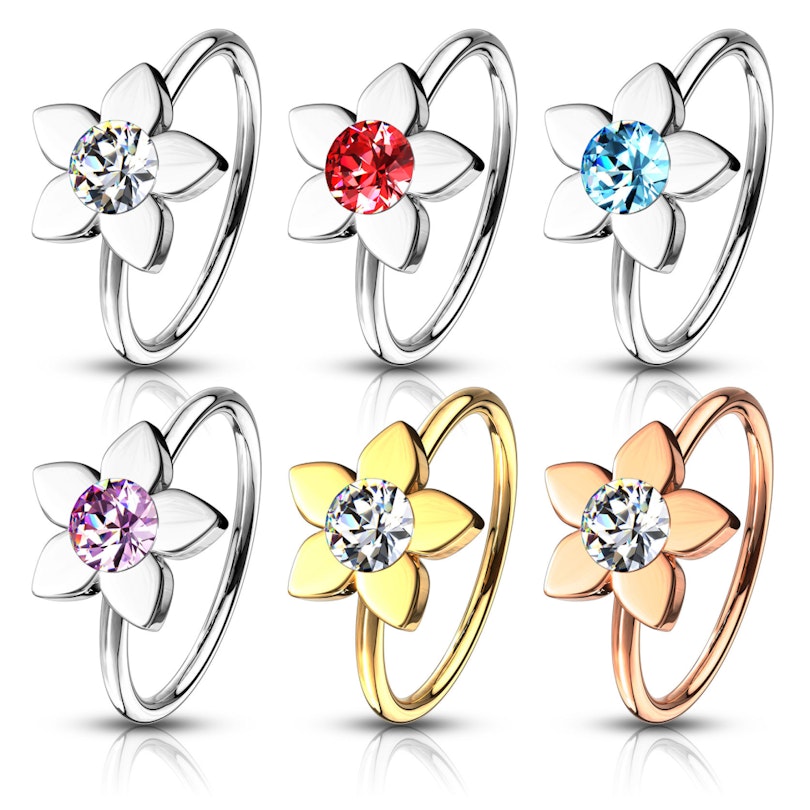 Nom: Piercing au nez avec une fleur de lotus et une pierre