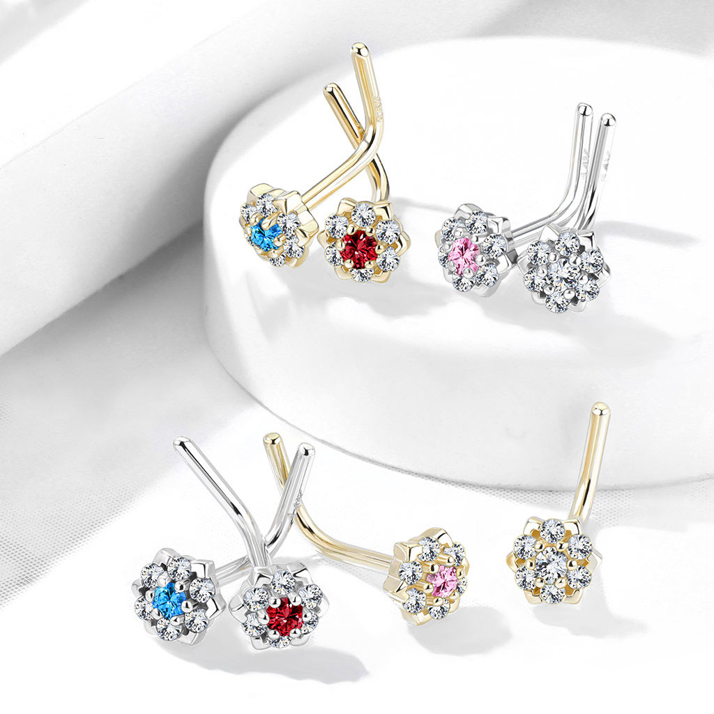 Les bijoux sont en or 14 carats et existent en or blanc et or jaune. Le point du bijou a été courbé jusqu'au bout pour qu'il soit mieux fixé dans le nez. Par conséquent, les bijoux ne tomberont pas.