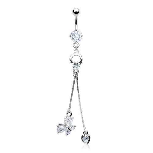 Nom: Piercing pour le nombril avec cœur et papillon pendants