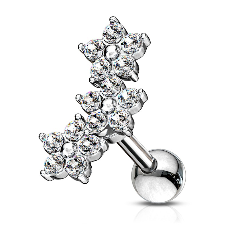 Piercing pour l'oreille avec 3 fleurs en pierre alignées
