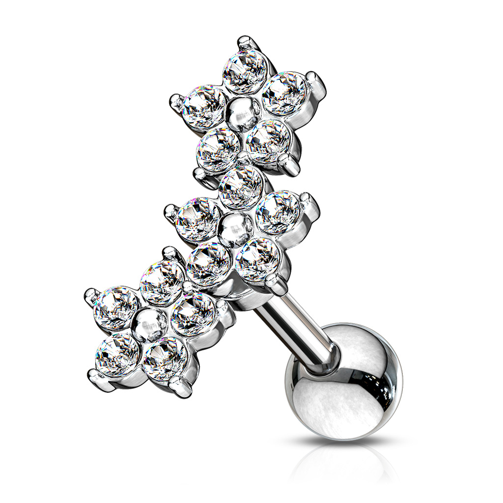 Piercing pour l'oreille avec 3 fleurs en pierre alignées
