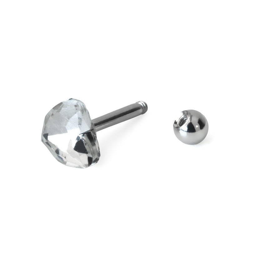 Le clou a une épaisseur de 16g (1,2 mm) et une longueur de 6 mm), tandis que les zircons font environ 3 mm. Les boules peuvent être vissées et dévissées, tout comme les piercings ordinaires. Elles présentent toutes les mêmes caractéristiques, la seule différence étant la forme de la pierre et la couleur.
