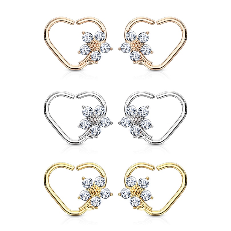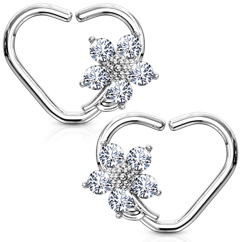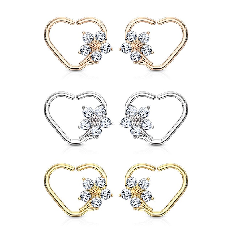 Nom: Piercing pour l'oreille avec un coeur avec une fleur en pierre