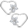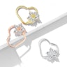 Piercing pour l'oreille avec un coeur avec une fleur en pierre