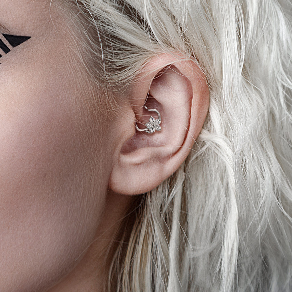 Piercing pour l'oreille avec un coeur avec une fleur en pierre