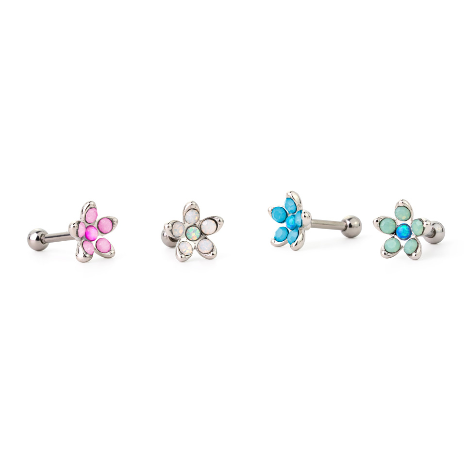 Piercing pour l'oreille avec une fleur incrustée d'opales