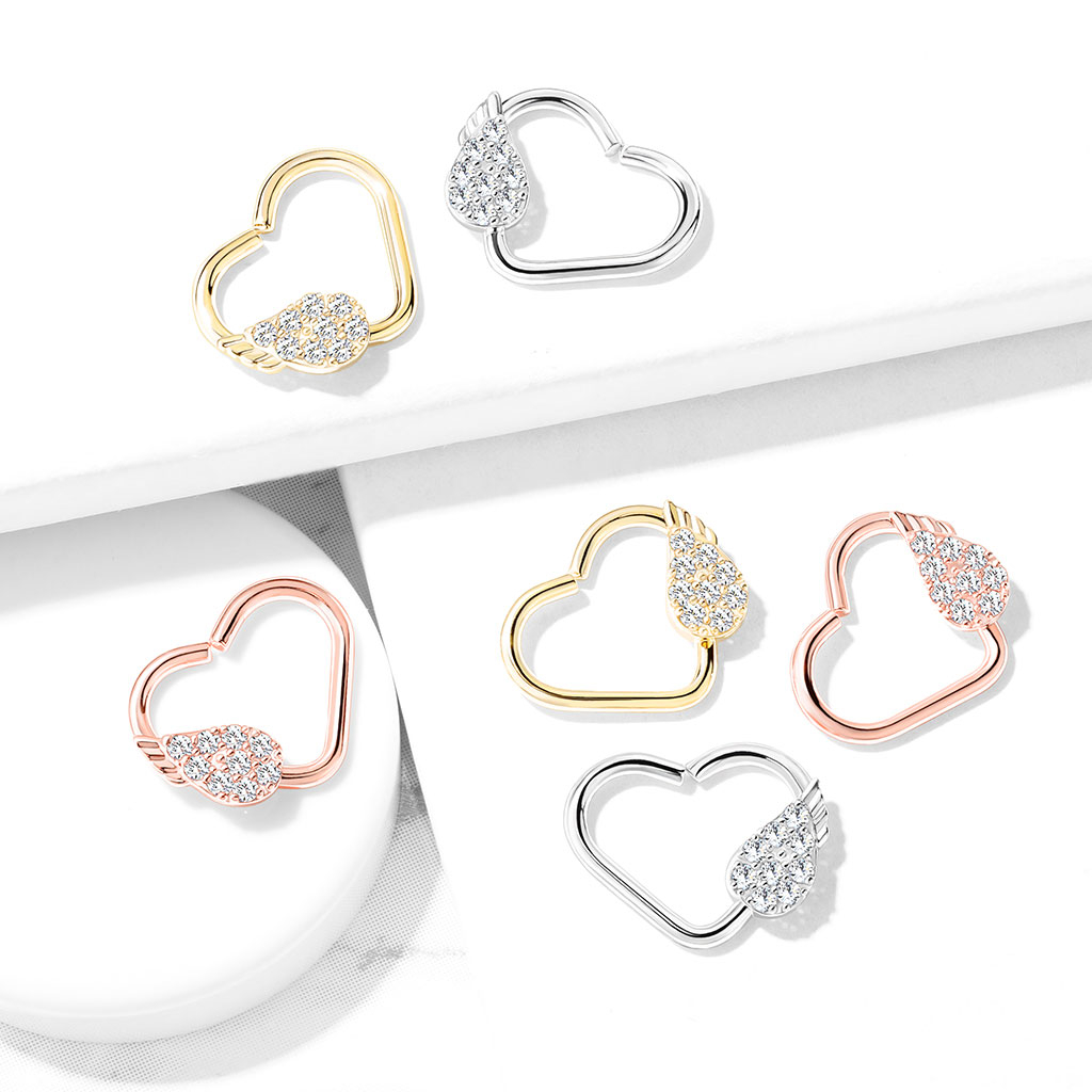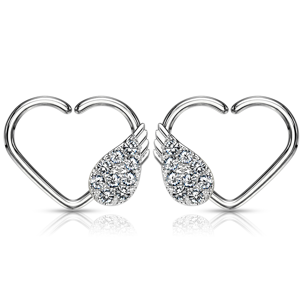 Piercing pour l'oreille en forme de coeur et aile d'ange