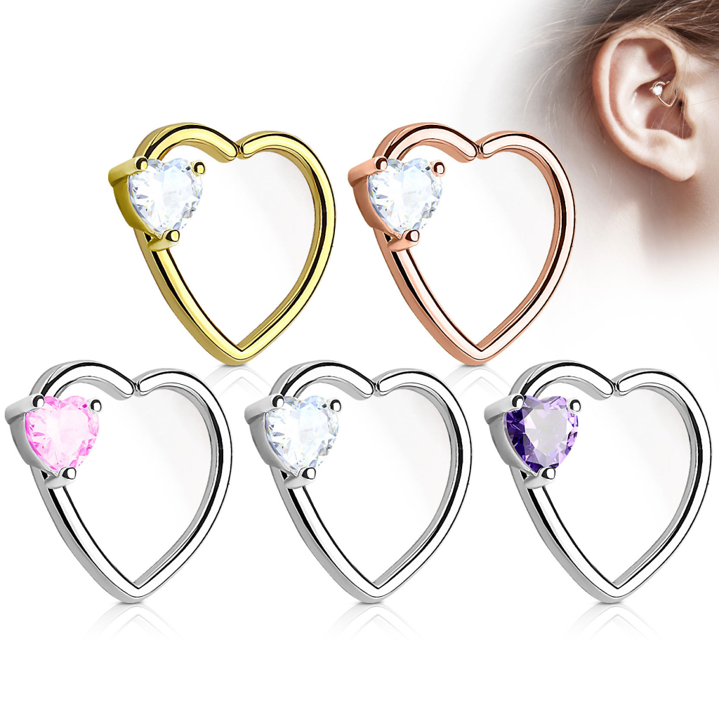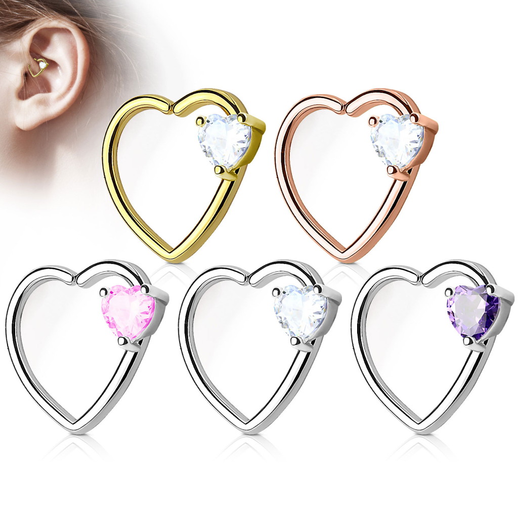 Piercing pour l'oreille en forme de coeur et petit coeur en pierre