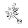 Le bijou que tu vois ici consiste dans toute sa simplicité en une tige droite de 6 mm, avec une belle feuille à l'avant. Avec ses feuilles et son aspect distinctifs, nous savons tout de suite de quel type de feuille il s'agit : une feuille de chanvre, ou feuille de cannabis. Si tu es contre le cannabis, on peut aussi dire que la feuille est une feuille d’érable :)