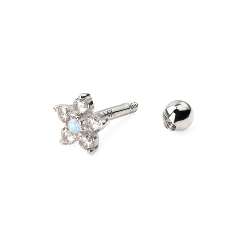 Piercing pour l'oreille en or 14 carats en forme de fleur et opale au centre