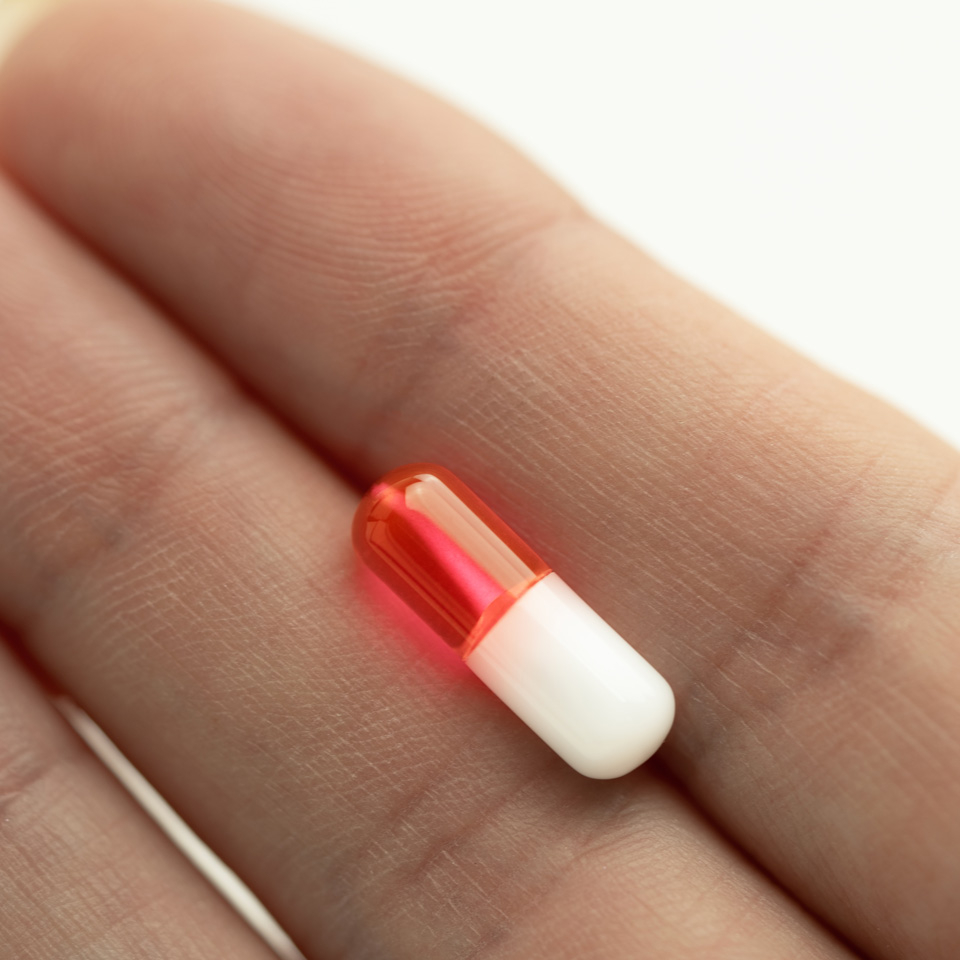 La taille de la pilule bicolore est inspirée des vraies pilules de 16 mm de longueur. Cependant, elle n'a pas grand-chose à voir avec les médicaments ordinaires. Cette pilule originale est disponible en sept combinaisons de couleurs différentes. Une moitié de la gélule est blanche dans tous les modèles, mais tu peux choisir ci-dessus la couleur que tu préfères pour la moitié restante.