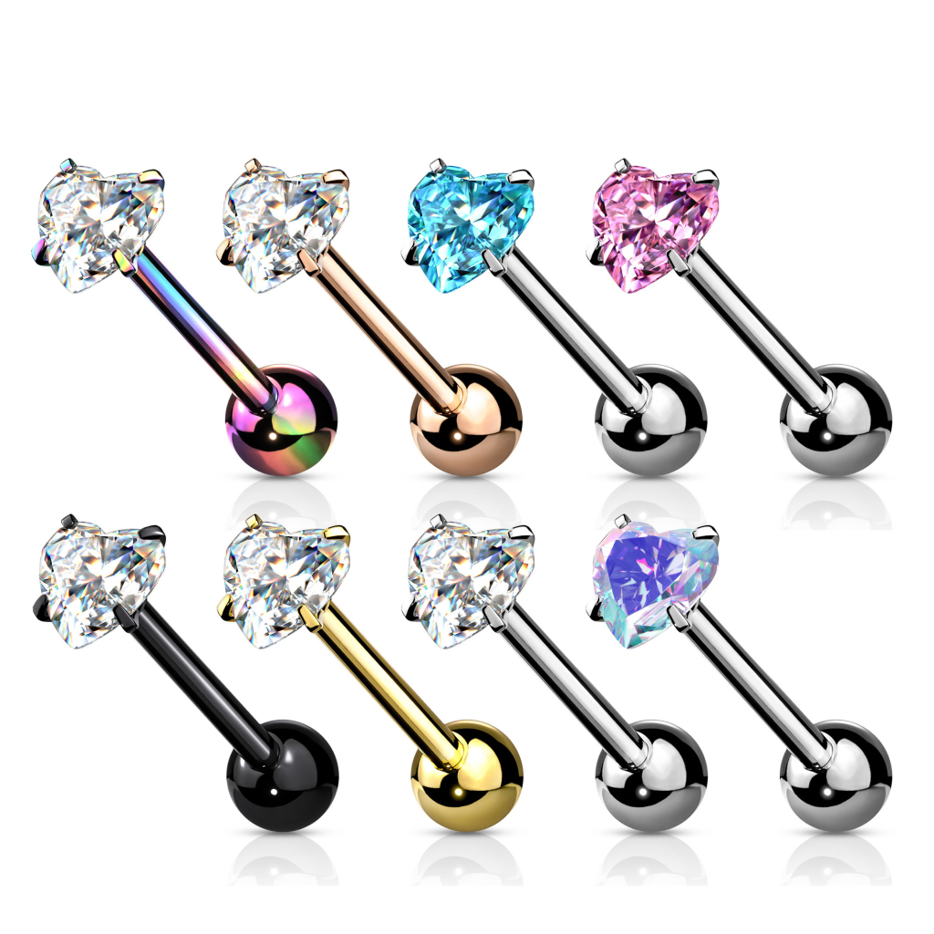Piercing pour la langue avec une pierre en forme de coeur