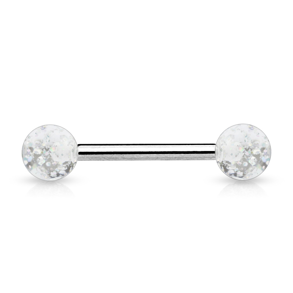 Piercing pour la langue en acier chirurgical avec boules en acrylique et couleurs au choix