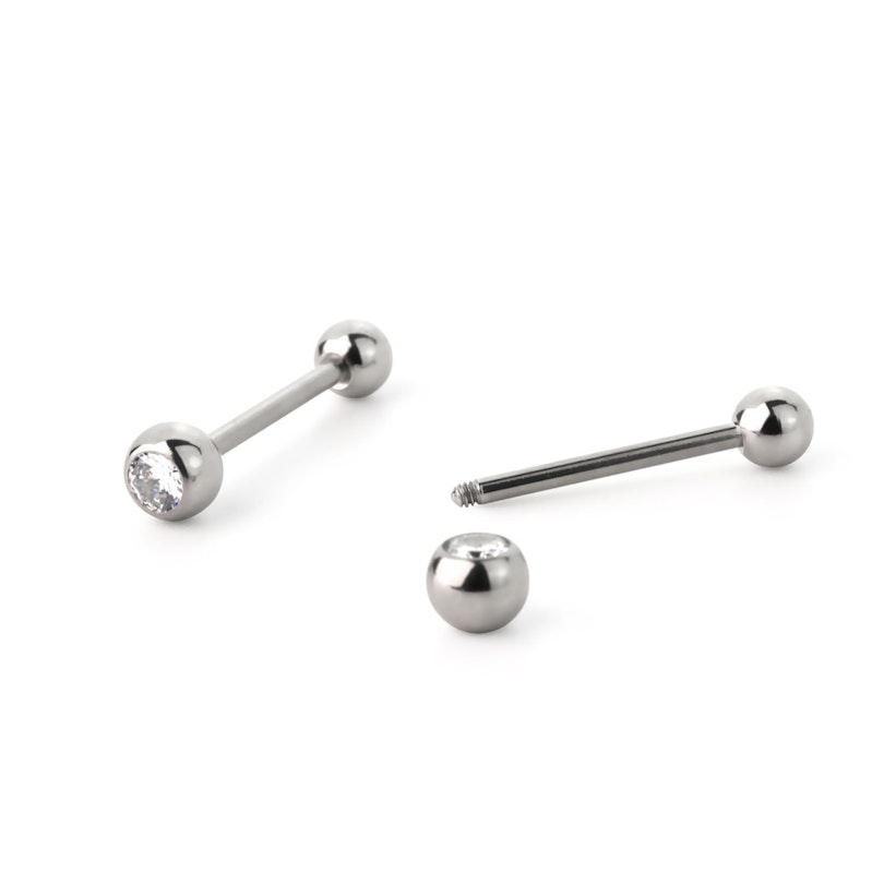 Procures-toi ce magnifique piercing pour la langue simple avec une pierre précieuse sertie sur la boule supérieure. Il est disponible dans de nombreuses couleurs différentes, de sorte que tu puisses l'assortir à ta tenue tous les jours sans te ruiner.
